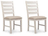 Set the scene for coastal chic or modern farmhouse living with this 7-piece dining room set. The clean-lined, simply striking table doubles the charm with its warm brown plank-effect top and grayish white base. Two convenient side drawers and a lift-top bin offer abundant storage options. Six upholstered, ladderback chairs sport a grayish white finish with rubbed through effect for a timeworn appeal.