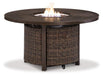 - Fire pit table door conceals gas propane tank (not included); convertible to natural gas