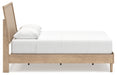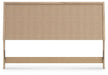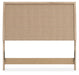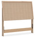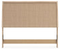 - Headboard panel with textured beige finish that replicates the look of cane